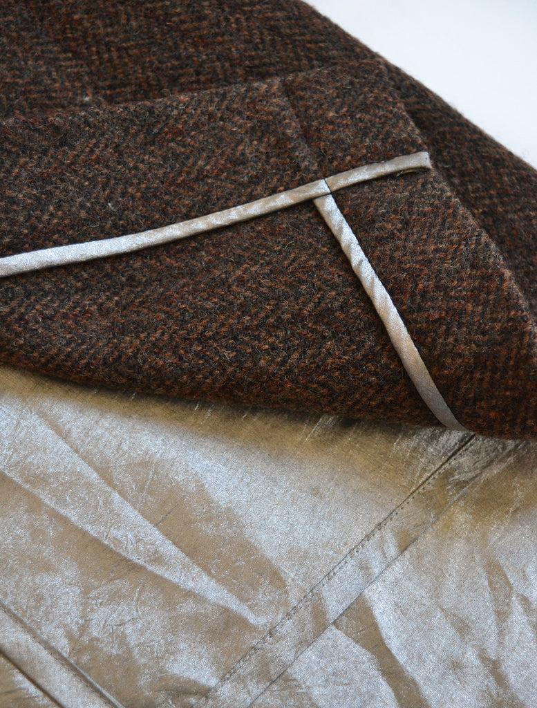 Lined with metallic silver fabric . 100% Wool. Made in Japan.